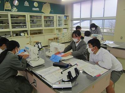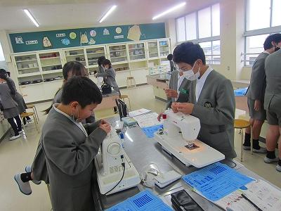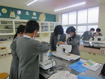 その後に下糸の巻き方、下糸の入れ方、上糸のかけ方、下糸の引き出し方を学習しました。ペアで協力しながら、がんばって取り組んでいました。