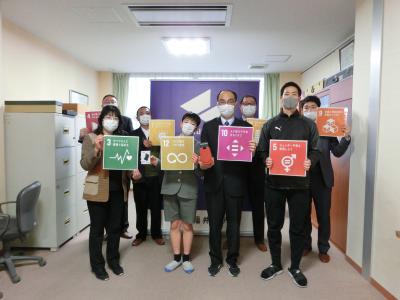 町教育委員会より、感謝状も贈呈させていただき、最後には、SDGsの標語を一人一枚ずつ持って記念写真を撮らせていただきました。
