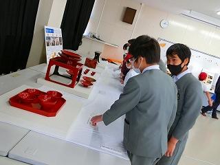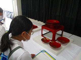 また、授業後は「おでかけ美術館」として全学年が直接輪島塗にふれる機会を設けていただきました。多くの児童が足を運び、職人の技を直接見てそのすごさを実感していました。