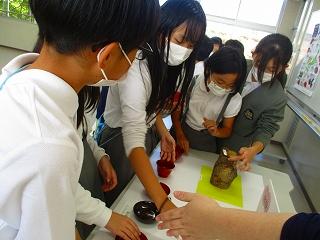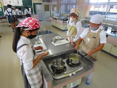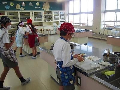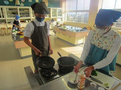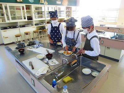 今年度では初めての調理実習で、さらに感染症対策をしながらなので、緊張した様子もありながらも楽しそうに取り組んでいました。