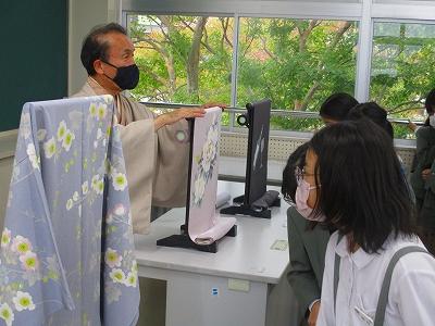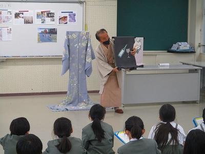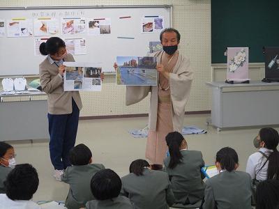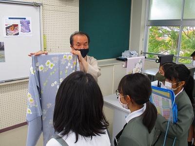 社会科の学習として、和装の仕事に携わっている福島正弘様をお招きし、加賀友禅についての学習をしました。