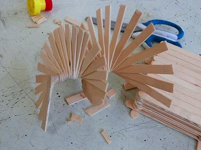 アイスの棒は、衛生面から新品を使用していますが、家で実際に作ってみるときには、自分や家族が食べた後のアイスの棒をためておいて作ることも出来ます。6年生は総合でSDGsの学習をしているので、総合の学習にもつながる図工となりました。