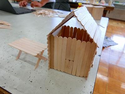 風車、ログハウスなど、できあがりを想像しながら見通しを持って組み立てていく力が必要です。家の入り口に取っ手をつけるなど細やかな仕事をしている子どももいます。限られた時間の中で仕上げる必要もあるため、計画性をもって活動する力も身につきます。