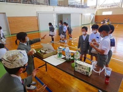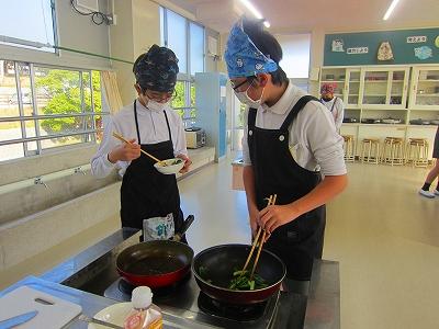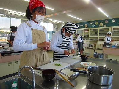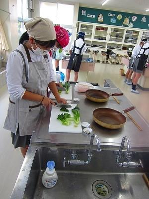 5年生は「豆腐とねぎの味噌汁」6年生は「小松菜いため」