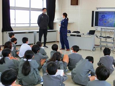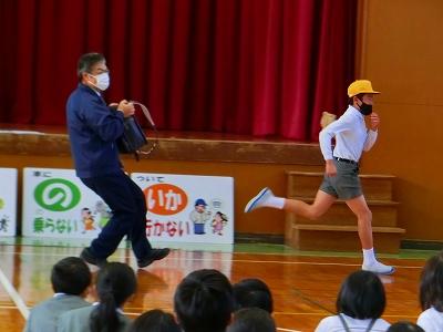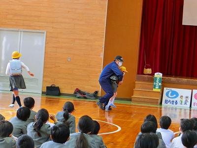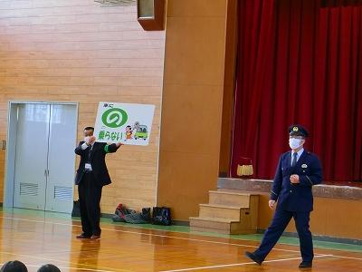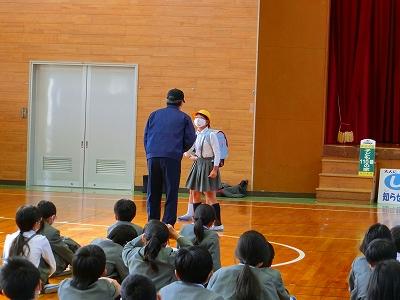 また、実際に町の中で声を掛けられ連れ去られそうになった場合の対応についても児童代表との実演で教えて下さり、実りの多い時間となりました。
