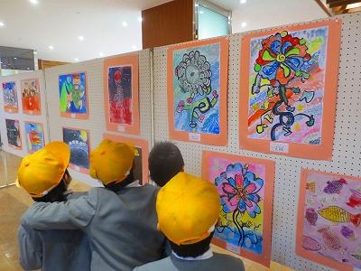 2年生みんなで内灘町総合美術展に行きました。いろいろな作品を見ながら、「この絵、とっても細かく描かれているよ。すごいね。」「この人の字上手だね。」と、友達と感想を話していました。すてきな作品にたくさん出会えました。