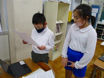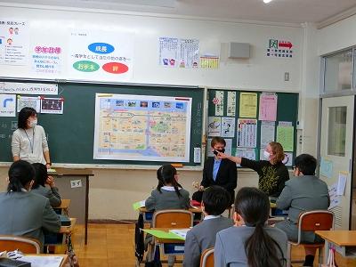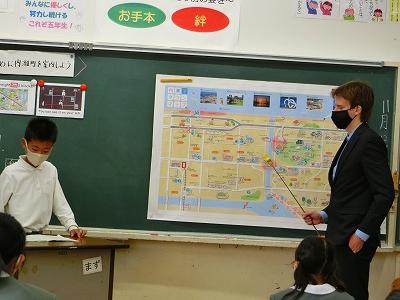 内灘町に住み始めてまだ日が浅い、外国人の方お二人をお招きして、5年生が内灘町の道案内をしました。