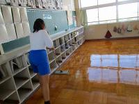 やり方のコツを教えてもらってから、黙々と自分の担当場所をピカピカにしていました。