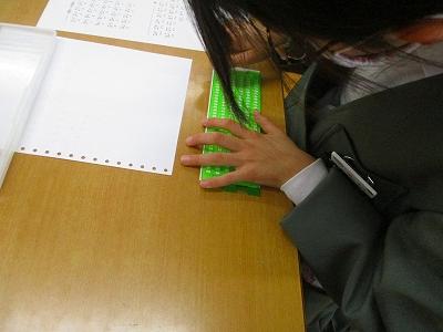 今回の点字教室では、実際に自分の名前を打つことで点字について理解を深めるとともに、点字を通して、目が見えなくても読める一方で平仮名しかないために同音異義語がわかりにくいという不便さもあることを実感している様子がみられました。