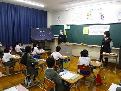 学校に不審者が侵入したという想定で不審者対応避難訓練を行いました。不審者が入り込んだことを表す放送を聞いて、子どもたちは避難行動をとりました。