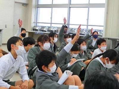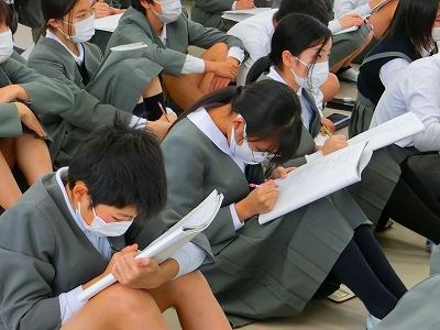 不審者が捕まり安全を確認できたという放送が聞こえるまでじっと静かに待ち続けることが出来ました。その後、体育館に集まり、警察署の方から不審者と出会ったら、どんな行動を取ればいいのか教えていただきました。