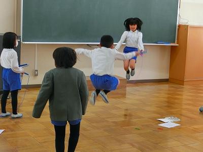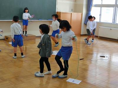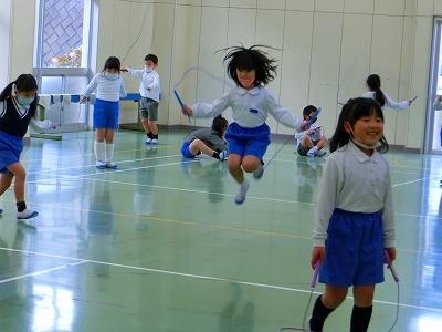 冬の体力作りとして、大根布小学校では、長休みと昼休みに全校で縄跳び運動を行っています。1年生もなわとび運動に挑戦中。1年生教室周辺の空き教室やプレイルームを使って取り組んでいます。コツコツと取り組む事で、少しずつ出来る技が増えてきたり、跳べる回数が増えてきたりと上達の手応えを感じるのではないでしょうか。