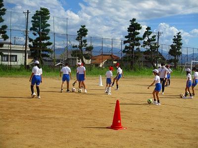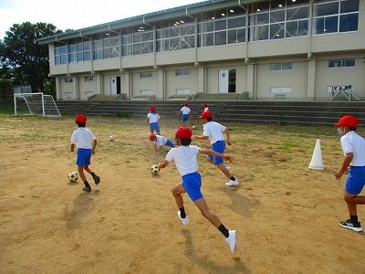 ドリブルやパスを中心に練習しました。一生懸命、ドリブルしたり、パスをもらうために走ったりする姿がありました。