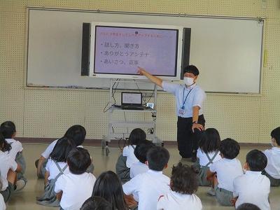 本校では、9月の生活目標と連動した「挨拶運動」に取り組みました。朝からとても暑い日だったのですが、子ども達が、のぼり旗を手にした挨拶運動に協力してくれた大人の方々に向かって大きな声で「おはようございます」と声をかける姿がたくさん見られました。中には、きちんと頭を下げてさらに気持ちを伝える子もいました。児童玄関前には、1学期に植えた「人権の花」も色鮮やかに咲いていて、子ども達に「グッドマナー」の輪が、さらに広がっていくような朝の光景でした。