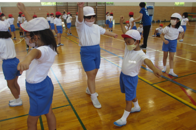 4年生は3年生のお手本となれるように、授業の開始から素晴らしい姿をみせてくれました。3年生は4年生の姿をみて、もっと上手に踊ることができるように4年生の姿を真剣な眼差しでみていました。お互いにいいところを見つけ、さらに良くなるために教える様子がみられました。