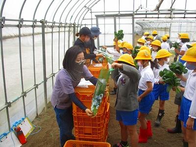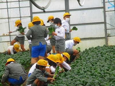 農家の仕事についてたくさんお話を聞かせていただき、なんと小松菜の収穫まで体験させていただきました。