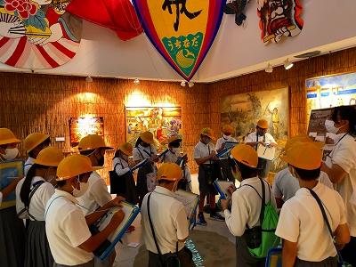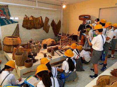 学芸員の方にお話をしていただき内灘町の歴史や昔の内灘の暮らしについて学びました。子どもたちは真剣な眼差しで話を聞き、メモをとり、内灘町の歴史に興味津々でした。内灘町の歴史をたくさん学ぶことができました。