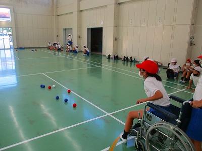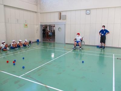 障害の有無にかからわずできるスポーツの1つであるボッチャですが、今回は車いすから投げたり、立ったところから投げたりと普段できない経験をすることができました。子どもたちはゲームを楽しみながら、パラスポーツについて学んでいました。