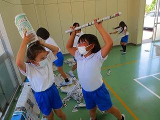 図工「しんぶんしとなかよし」の学習をしました。