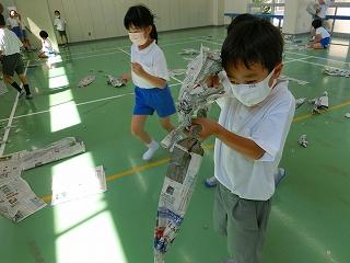 新聞紙をちぎったり、丸めたり、つなげたりなど様々な工夫をして遊んでいました。