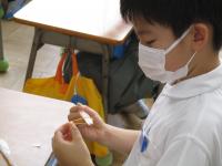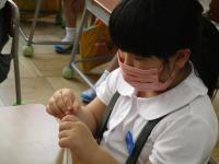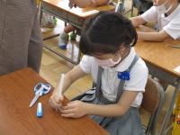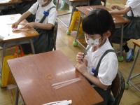 1年生は 生活科の学習の中で、シャボン玉遊びを計画しています。先日は、固形石けんをけずってシャボン玉液を作っていました。1年生の子ども達の中には、シャボン玉液は、自分で作ることができる物ではなく、お店で買ってこないとだめだと思っていた子もいたようなので、いい体験になったと思います。