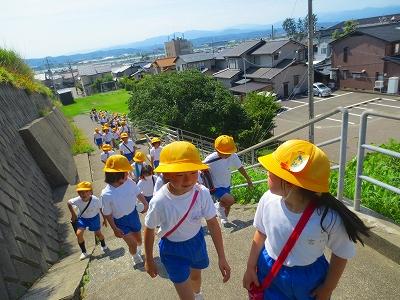 今日は、最後の町探検に行きました。大根布8丁目と9丁目をまわりました。交通ルールや公園での遊び方を確かめたりもしました。どの子も元気いっぱいに活動することができました。