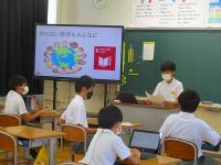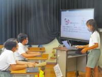 その後、1学期のまとめとして、「マイクロプラスチックストーリー ぼくらが作る2050年」という映画を見ました。海がプラスチックで汚染されている現状や自分たちと同じ小学生が調査をして実行にうつしている様子を見て驚いていました。ふり返りには、その驚きとととともにさらに関心が高まったことが多く書かれていました。
