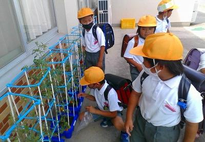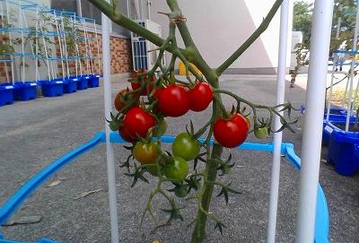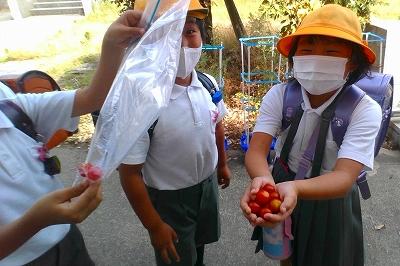 今日の放課後、みんなで一生懸命お世話したトマトを収穫しました。