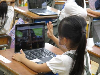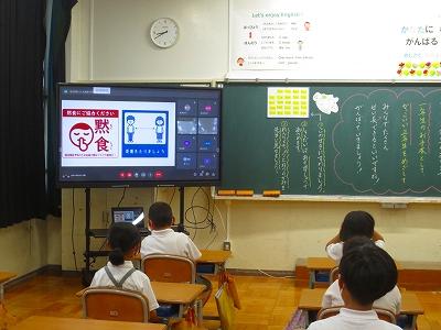 まずは、ミート会議の復習。先生がいなくても、おうちで出来そうなくらい上達した1年生。やっぱり画面に友達の顔がたくさん写るとうれしいのか、みんなニコニコ顔です。友達に画面越しに手をふる子もいました。