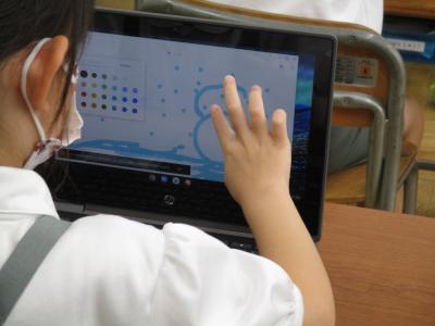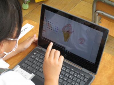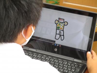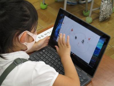 すでに、クロームブックで写真や動画の撮影の仕方や、デジタルドリルの使い方は学習済み。今日は、お絵かきソフトをつかって好きな絵を描くことに挑戦です。