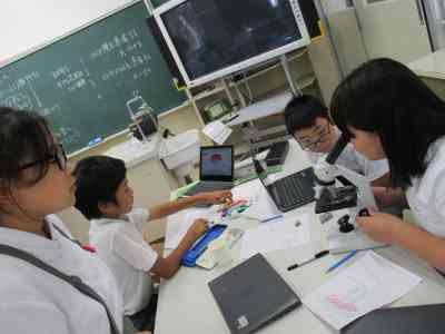 顕微鏡を使い、花粉の観察をしました。