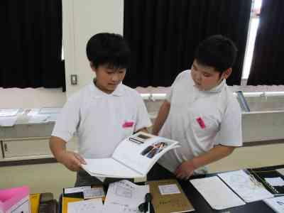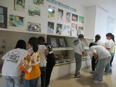 班ごとに館内を巡ってクイズの答えを探しました。