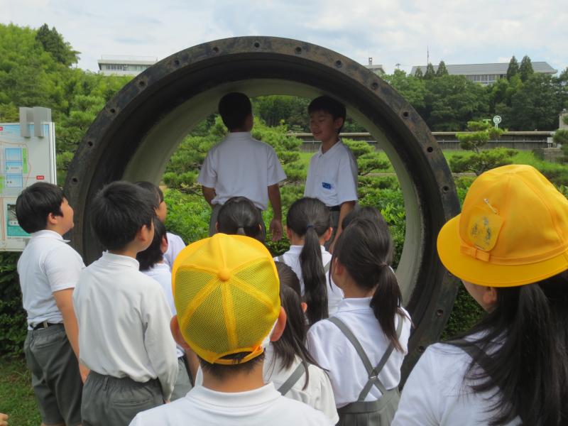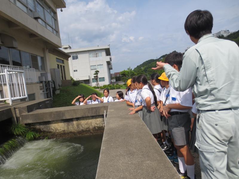 末浄水場では、犀川の水がどのようにきれいになって家まで届くのかを学習しました。どんどんきれいになっていく水を見ながら、浄水の過程の説明を聞きました。