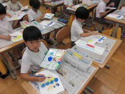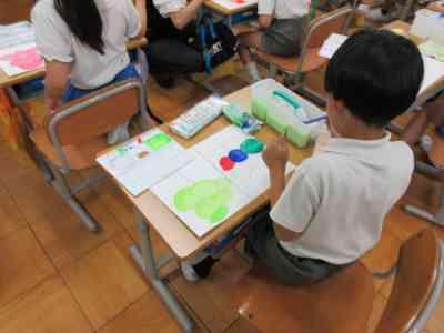 図工の時間ではこれから絵の具を使って作品作りを行っていきます。