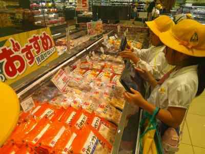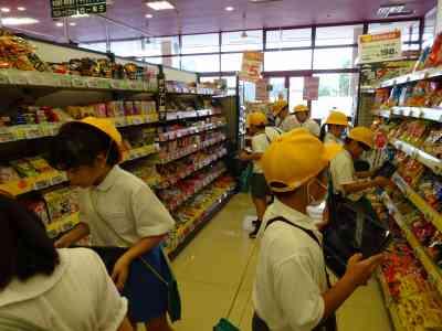子どもたちは、店長さんのお話を真剣に聞き、スーパーマーケットの仕事の工夫や、それぞれの食品の産地を中心に調べました。実際の商品に興味津々の子どもたちは、たくさんの工夫や産地の表示を見つけ、熱心に写真に撮り、学校に戻ってからも学んだことを一生懸命、メモしていました。