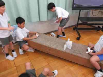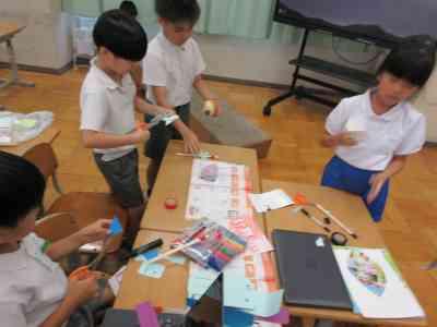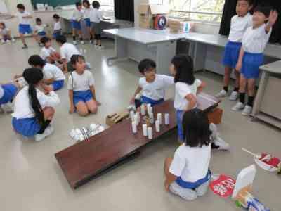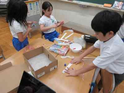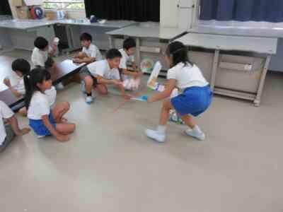 遊ぶ中で、もっと1年生が楽しむことができるおもちゃにするためには何が必要なのかということに気付くことができたようでした。次週、その気付きをいかし、足りなかった部分を付け加えていきたいと思います。