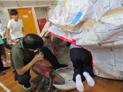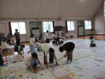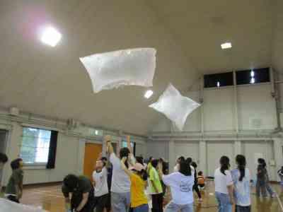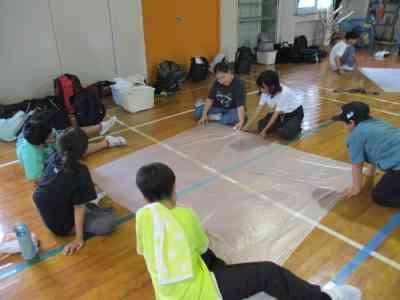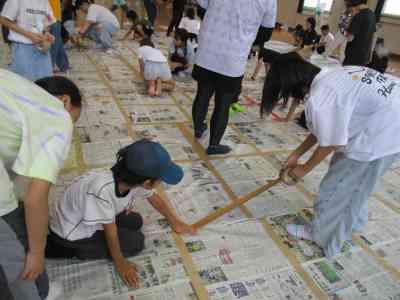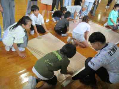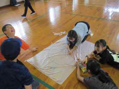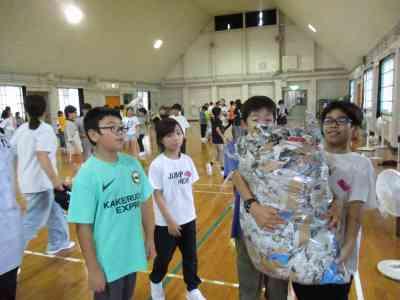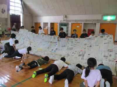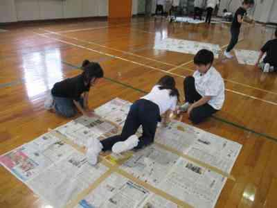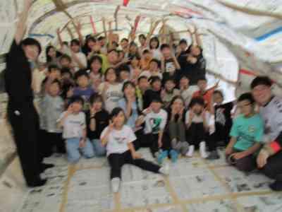 5年生全員で協力して、巨大な新聞紙ドームを作りました。