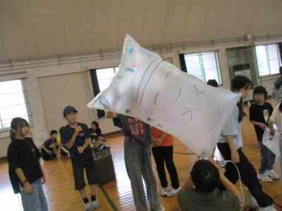 みんなで中に入り、最後は「せーの!」で飛び出しました。
