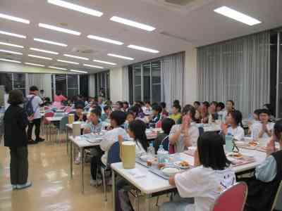 同日宿泊だった清湖小学校と合流し、夕べのつどいを行いました。