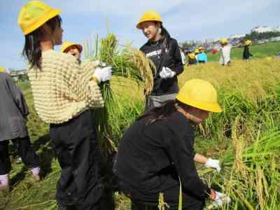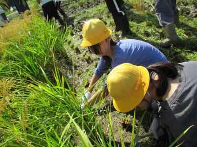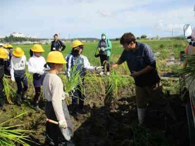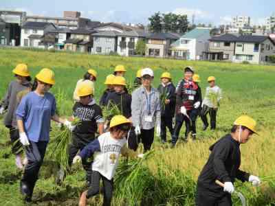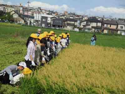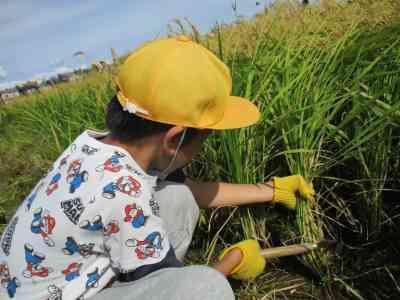 合宿明けの月曜日、5年生が育てていた稲の収穫に行ってきました。