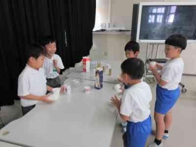 今回は、どんな動くおもちゃが作ることができそうか、試しに作ってみました。作り方を見ながら、どうやったらうまく作ることができるか考え、教えあいながら作ることができました。