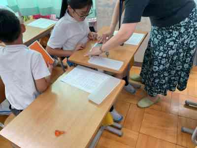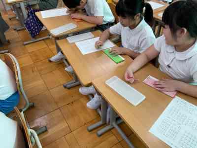 講師の先生をお招きし、実際に点字器を使って点字を打つ体験をしました。子どもたちは、初めて触れる点字に興味津々で、真剣な表情で取り組んでいました。