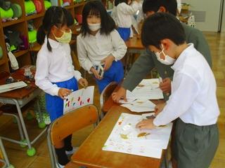 教科グループに分かれて、授業の様子を紹介したりしました。お手本となる先輩の姿を見せようと、どの子もがんばっていました。1年生みんなの思いが、ビデオで年長さんに届くといいなと思います。かっこいい2年生を目指して、残り数か月をみんなでがんばっていきます。