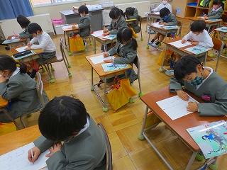児童はそれぞれの思いを込めて、ていねいに鉛筆や筆を動かしていました。