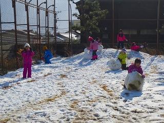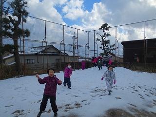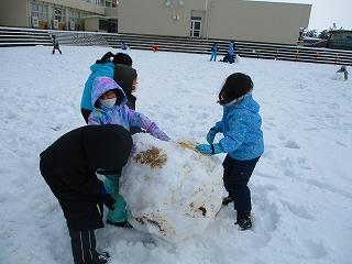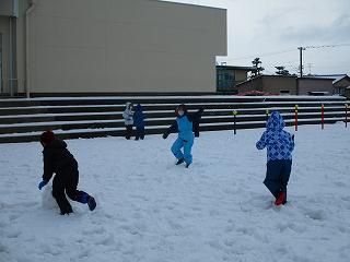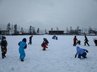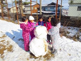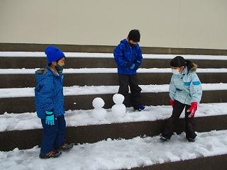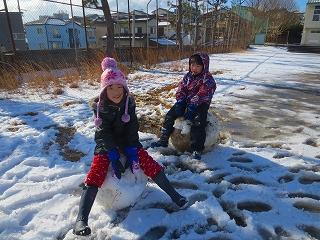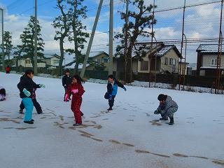 少ない雪でしたが、雪だるまを作ったり、雪合戦をしたりと、みんなで楽しく遊びました。どの子も元気いっぱいでした。