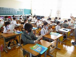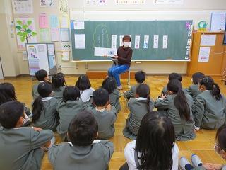 今日は、朝学習の時間に読み聞かせを聞きました。
