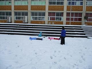 子どもたちは、雪だるまをつくったり、雪合戦をしたり、新しい雪の上に寝転がって遊んでいました。どの子も、とてもすてきな笑顔で遊んでいました。