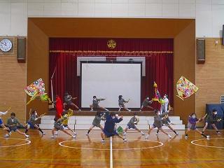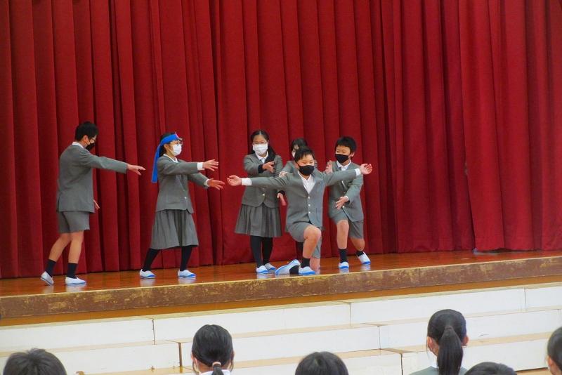5年生はピーチボーイと仲間たちで6年生との思い出を紹介しました。