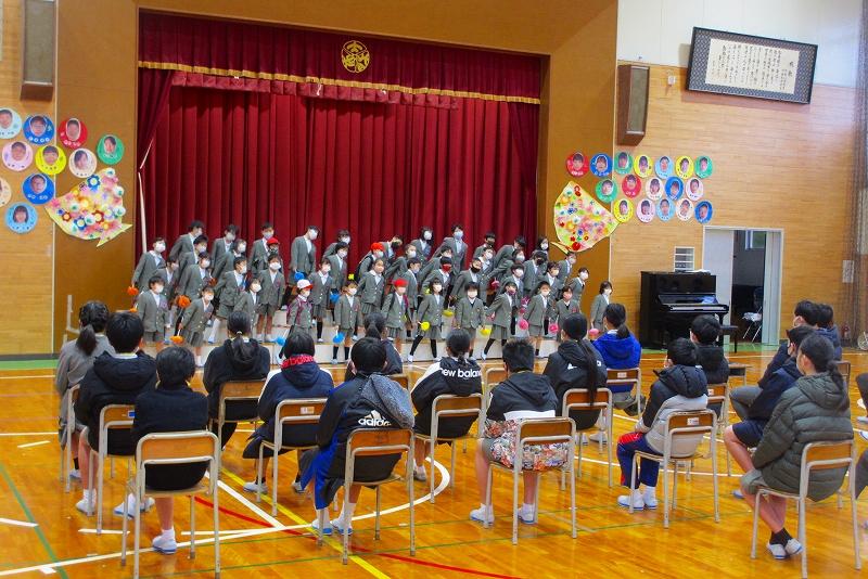 5年生が中心となり、お世話になった6年生に1~5年生が感謝を伝えました。どの学年もたくさん練習した成果を発揮し、本番は気持ちのこもった恩返しができました。素晴らしい大感謝祭でした。