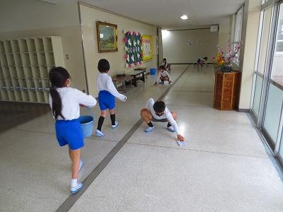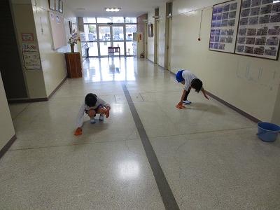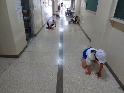 2年生は、1階の廊下の掃除を担当しています。無言で、隅々まで丁寧に掃除をしています。無言清掃で「心を磨く」子どもたち。とても素敵でした。